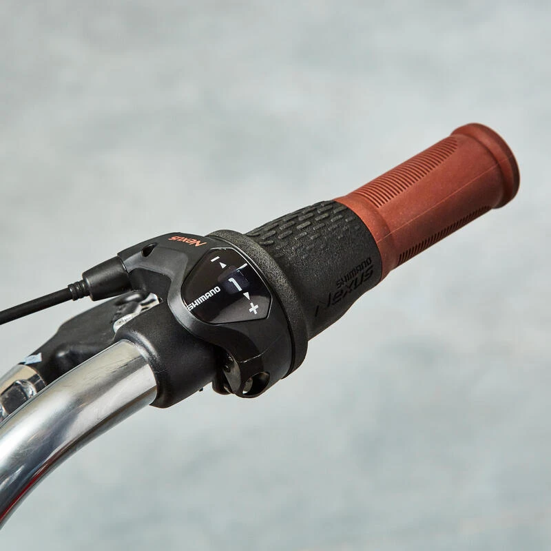 Ce vélo est équipé du moyeu à vitesses intégrées Shimano Nexus 3 vitesses. Il permet des passages de vitesses plus facile, plus de risque de dérailler et les vitesses ne sautent pas. De plus, ce moyeu est plus résistant, il est moins exposé à la pluie, à la poussière et aux chocs : il est idéal pour des déplacements quotidiens en ville. Son entretien est plus simple et comme la chaîne est toujours parallèle, elle s’use donc moins vite !