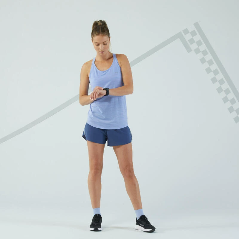 Nous avons revisité le style de ce débardeur Kiprun Care avec brassière en lui apportant du mouvement au niveau de la coupe du bassin et nous proposons différents motifs pour vous laisser le choix au gré de vos envies.